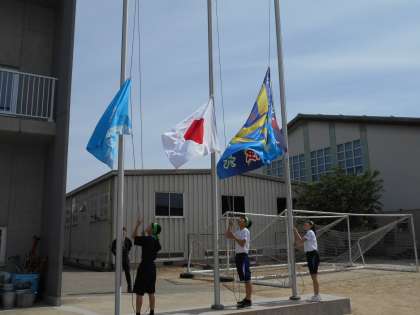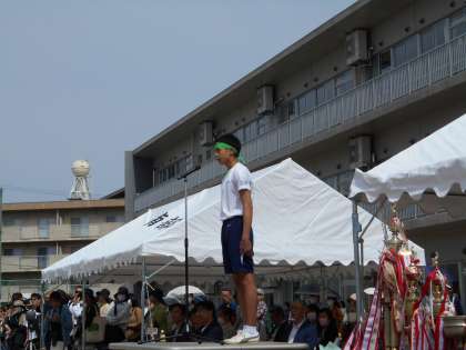 昨日の朝まで降り続いた雨の影響で、予行を含め練習日程を変更して今日まで準備を進めてきました。今日は、晴れわたる青空の下、予定どおり開始することができました。
