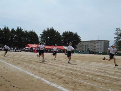 3年生が修学旅行で不在中に、1年生に団演技の指導をする機会がありました。運動会を通して、大きく成長した人もいます。団を率いる3年生の姿を見て、たくさんのことを学んだのではないでしょうか。中堅学年の力走です!