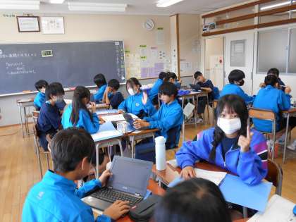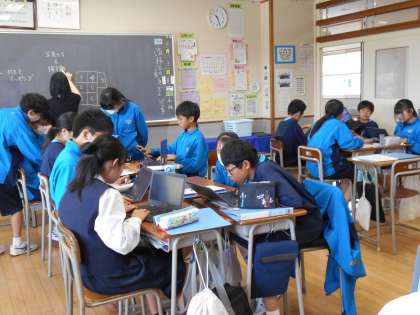 1年生は総合的な学習に時間に富山調べを行っています。今日は班で知っていることや調べたことをマッピングしました。