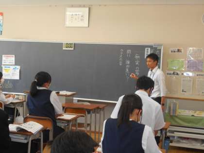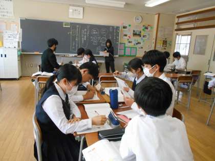 グループで意見を交流したり、クロムブックで調べたりしています。