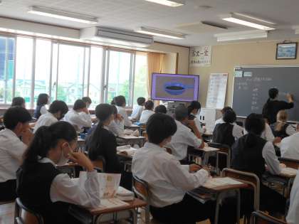 技術・家庭(家庭分野)、英語の様子です。英語はALTの先生もいらっしゃいました。