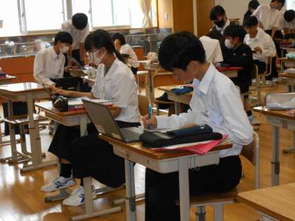 授業の様子です。期末評価が近づき提出物も多くなっています。