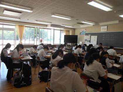 6月14日(金)学校での活動 公開日 2024/06/14 更新日 2024/06/14 南中NEWS 富山市総合選手権大会の今日、学校に登校したメンバーは、仲間の活躍を心の中で応援しながら、それぞれが課題を決めて自習をしたり、掲示物を作成したりしました。 また、男子バスケットボール部員は、午後からの試合に向けて体育館で最終調整を行いました。 写真は、左から1年生、2年生、3年生の教室の様子です。