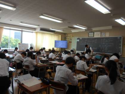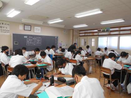 社会、英語、技術・家庭(技術分野)の様子です。技術は、キャビネット図と等角図の演習をしていました。