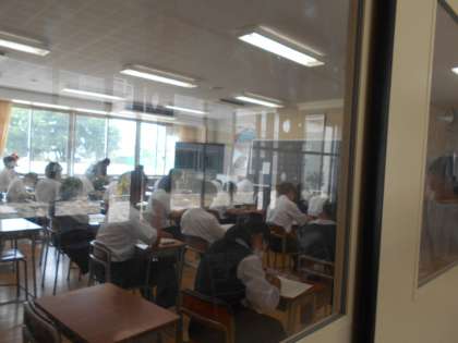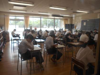 廊下からのガラス越しですが、期末評価に真剣に取り組む様子です。
