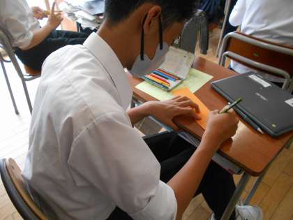 お願い事をすぐに書いた生徒もいれば、あれこれ考えている様子の生徒もいました。