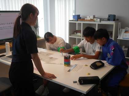 働く上での心構えを確認しているようです。3人でよく話し合い和気あいあいとした雰囲気で協力していました。