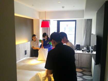 認定こども園立正幼稚園(左)、ホテルJALシティ富山(右)の活動の様子。
