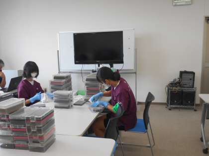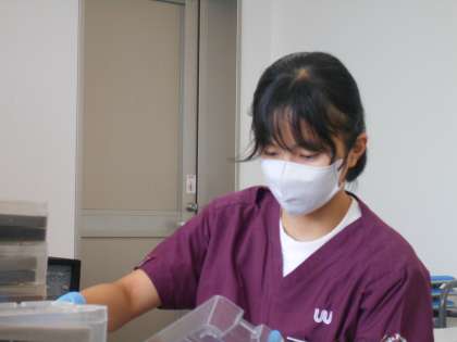 和田精密歯研では、ケースを拭く作業を行っていました。綺麗な環境で作業をしていました。指導ボランティアの方からは、「技工士の仕事があまり世間に知られていないので、たくさんの人に知ってもらいたいという想いもあって今回活動に協力させてもらいました。」というお話を聞かせていただきました。