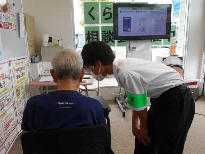 ドコモショップ富山店では、スマホ教室の補助やパンフレット等のホチキス留め、商品の入荷作業等の活動に取り組んでいました。