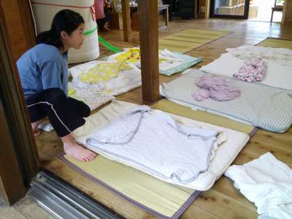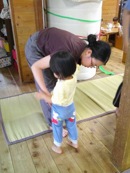 どんぐり山共同保育園では昼食補助とお昼寝の準備をしていました。様々なことに興味津々な園児達への積極的な声がけが印象的でした。