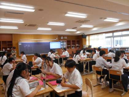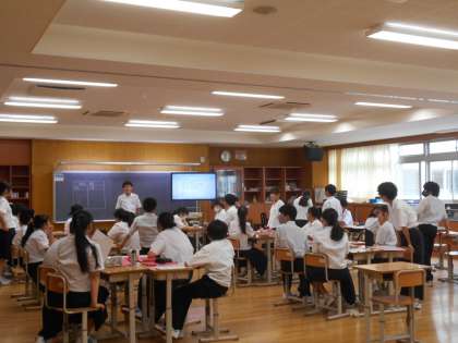 音楽(左から2枚)、国語の様子です。音楽は、曲を鑑賞したときに使う言葉を増やすために、皆で話し合っていろいろ出し合っていました。