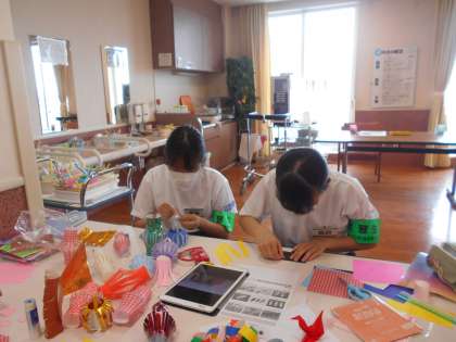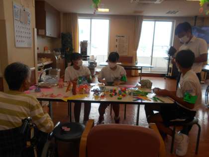 職員の方からは、「なかなか手が回らないなか、利用者さんと飾りを手作りで作ってくれたり、お話相手になってくれたりと、十分に役割を担ってくれてとても助かっています。」と言って頂きました。生徒たちも、いつもと違う環境、違う活動内容を「新鮮。楽しいです。」と言って積極的に取り組んでいました。