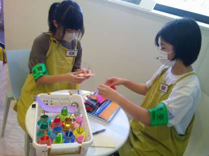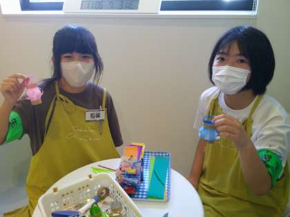 ambitiousでは、七夕飾りの作成や、商品の整理を行っていました。タオルなどにも決まったたたみ方があり、その通りにするのが難しいと話していました。また、腕にパックを塗る体験もさせてもらったそうです。