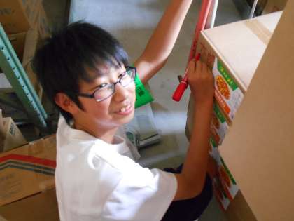石田株式会社では、配送するための荷物を梱包し、重さを量って積み込む仕事をしていました。10kgを超えるような重たい荷物ばかりでしたが、汗を流しながら頑張って活動に取り組みました。
