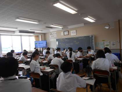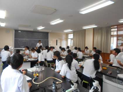 社会、理科の様子です。理科は、いくつかの白い粉の正体を実験から探っていました。