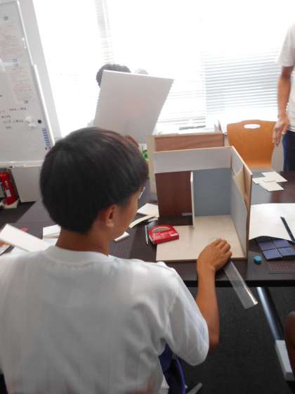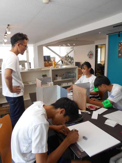 指導ボランティアの方からは、「将来建築を目指す生徒が出てくれることを望んで活動に協力しています。子どもたちの作る模型には、それぞれ個性があって、楽しく作業に取り組んでくれていると思います。」とお話して頂きました。