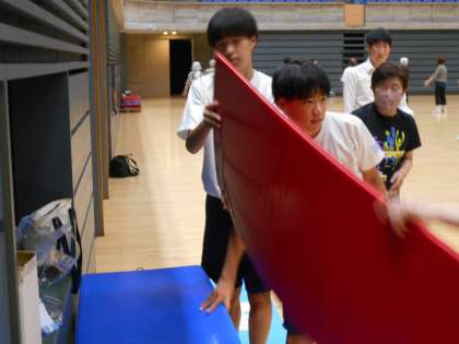 富山市総合体育館では、午前中にフィットネスルームを利用させていただきました。午後からは「らくらくスポーツ教室」に参加し、活動を楽しんでいました。活動のはじめに大きな声で自己紹介を頑張ってしていました。ストレッチの際に、マットを自分から進んで参加者の方に配っていました。