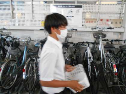 富山中央警察署では、富山駅の駐輪場にて交通安全を呼びかけながらティッシュ配りを行いました。緊張しながらも、自転車を利用している人に声をかけていました。あと1日頑張りましょう。