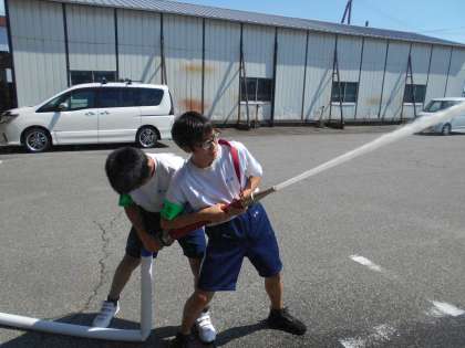 ホクシン・システムでは、倉庫の火災報知器や消火機器の点検を行っていました。放水など楽しそうでした。
