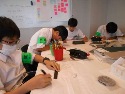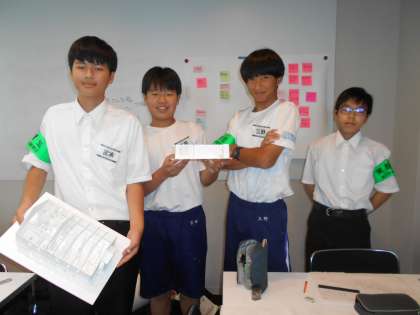 第一交易株式会社では、自分の考えた「理想の家」についてプレゼンテーションをするための準備を行っていました。生徒たちからは、「教会の模型作りが楽しかった」「台車のペンキ塗りが面白かった」という話が聞けました。