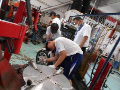 日産サティオ富山 富山南店では、車のタイヤ交換を行っていました。この5日間でかなり手慣れており、たくましくなっていました。