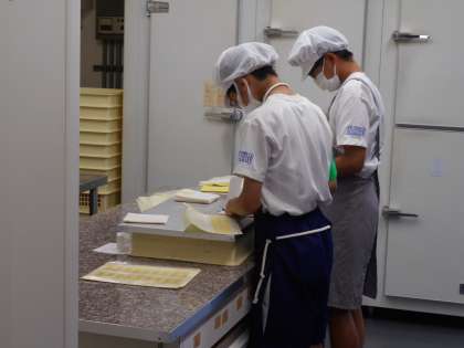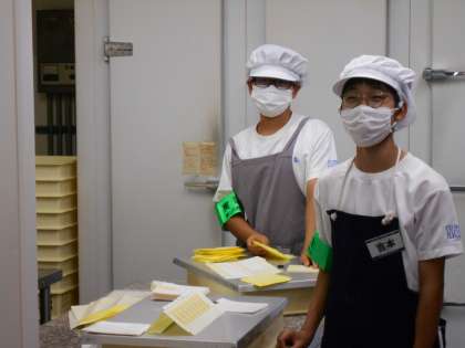 和の心ぷちロールでは、商品を入れるための袋づくりをしていました。2人とも丁寧に作業しており、指導ボランティアの方からも「とても助かりました。」という言葉をいただけました。