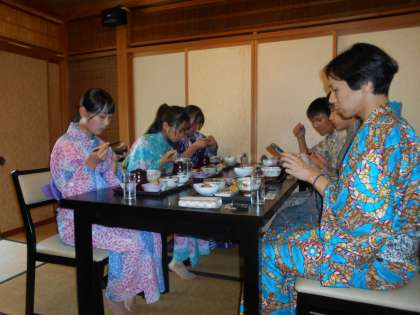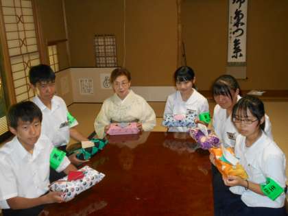 熊本商店では、ティッシュカバーの制作に挑戦し、今日完成させることができました。また、着付けの先生から浴衣の着付けについて教えていただきました。生徒からは、「目上の方への態度などを学ぶことができた」「これからの人生に役立てていきたい」という話を聞くことができました。