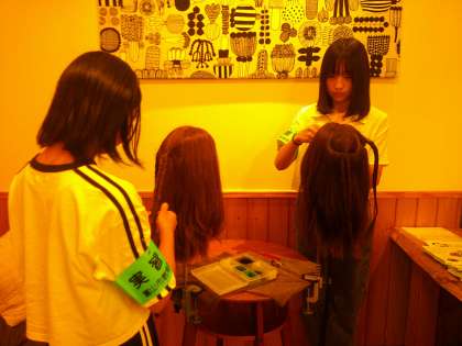 SUCCESS 西町店では、髪のパーマやヘアアレンジの実践をしました。指導ボランティアの方から教わったことができるようになって、とても嬉しそうでした。