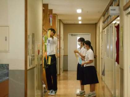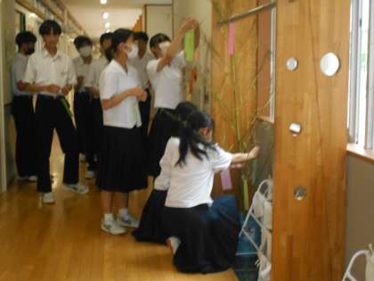 1組は七夕の飾り付けを行っています。