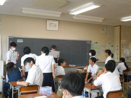 5組は学級レクリエーションです。絵を使った伝言ゲームをしていました。