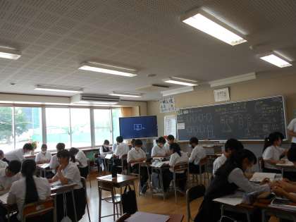 国語、理科の様子です。国語は、俳句の鑑賞文の発表に向けて打合せ中。理科は、いくつかの細胞分裂の図を正しい順に並べていました。どちらも目的を明確にした学び合いです。