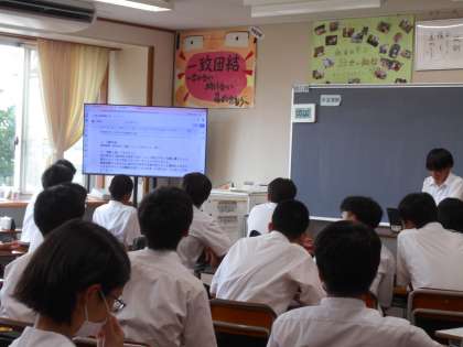 全学級で、「社会に学ぶ『14歳の挑戦』」の報告会を行っていました。