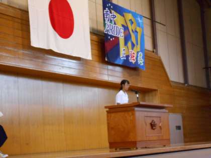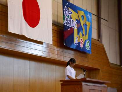 2学年の代表生徒は、「運動会で学んだこと」と題し、運動会で仲間と協力して全力で取り組んだことが自分にとって大きな価値だったと発表しました。