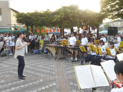 7月27日、光陽夏まつりで吹奏楽部がステージ発表を行いました。たくさんの手拍子や拍手をいただき、皆さんに楽しんでいただけてよかったです。また、ボランティアの生徒たちは、会場運営のお手伝いをしました。とても暑い日でしたが、皆の一生懸命な姿、笑顔が印象的でした。