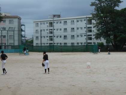 グラウンドは、野球部、陸上競技部、ソフトボール部、駅伝部が練習していました。(写真は野球、陸上競技)