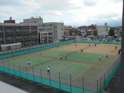 ソフトテニス部が、コート全面を使って練習をしていました。