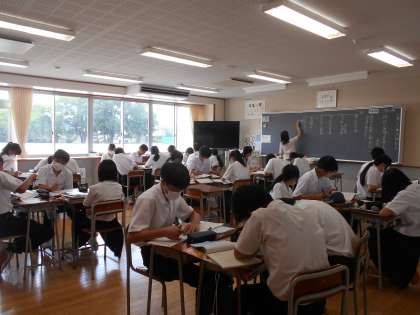社会、国語の様子です。社会の授業では、教育実習生が参観していました。