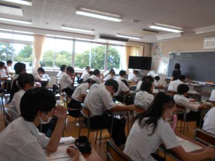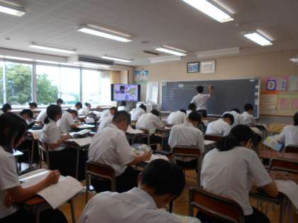 数学、社会、国語の様子です。国語の授業では、教育実習生が参観していました。