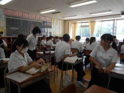 今日は担任の先生の授業です。じっくり資料を読み、自分の考えを持ちました。