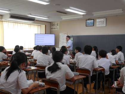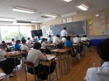 1年数学は教育実習の先生との授業です。2年英語はALTの先生との授業です。どちらも皆、真剣に取り組んでいました。