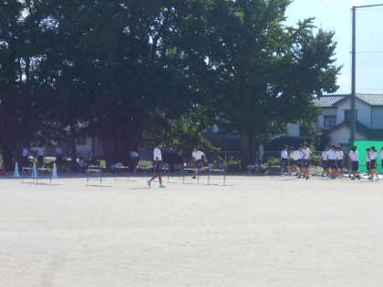 数学、保健体育の様子です。数学は、教え合いをしていました。体育は、木陰を随時利用しながら進めています。