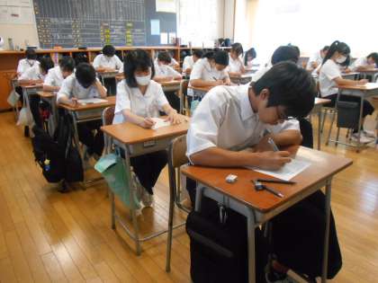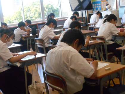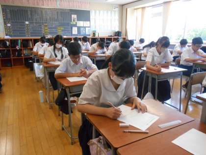 朝の南中タイムを利用して、休み明けテスト数学の結果から理解が不十分と思われる問題の復習テストを行いました。休み明けテストの数字だけを変えた問題でした。今回の内容は、今後の授業でも学習に必要なる重要な範囲です。しっかり見直しをして確実にできるようになってほしいと思っています。