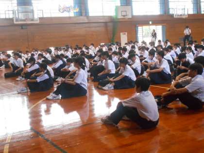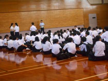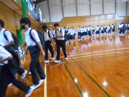 9月18日(水) 1学年高山校外学習 その1 公開日 2024/09/18 更新日 2024/09/18 1年生 待ちに待った高山校外学習の日になりました。朝早くから、元気に通学路を歩く姿をみることができました。体育館に集合し、健康観察と人員確認を行いました。学年全体では最後となる話を聞き、バスの待つ玄関に移動しました。 人員点呼をし報告している様子(左側) 話を聞いている様子(中央) 玄関へ移動する様子(右側)