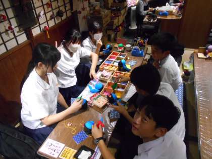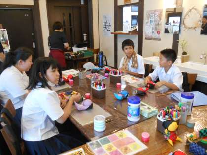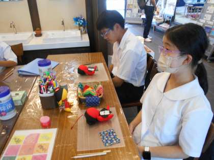 体験活動の様子、高山観光物産館でのさるぼぼ作りです。
