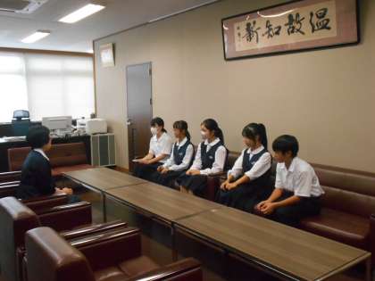 学年生徒会の各クラスの代表者が、校長先生に校外学習の事後報告を行いました。