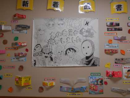 入荷した本の紹介を図書室前の廊下に掲示しています。