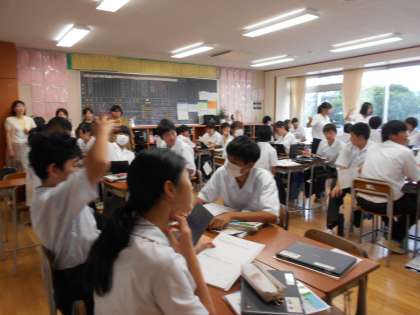 (左)2年2組 美術 (中)2年3組 理科 (右)2年4組 英語