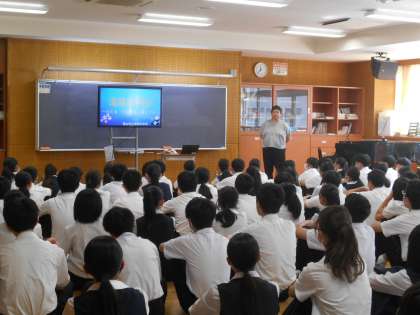 生徒たちは、受検の専願と併願の違いや、推薦選抜の受検について、真剣な眼差しで話を聞いていました。