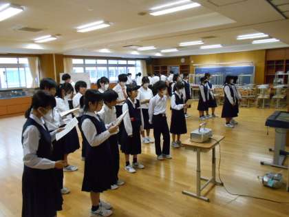 1・2・5組はピアノのある特別教室での練習でした。パート別に音や歌詞を確認しながら練習する姿が多く見られました。指揮をしながら練習している学級や、並び順を確認している学級もありました。